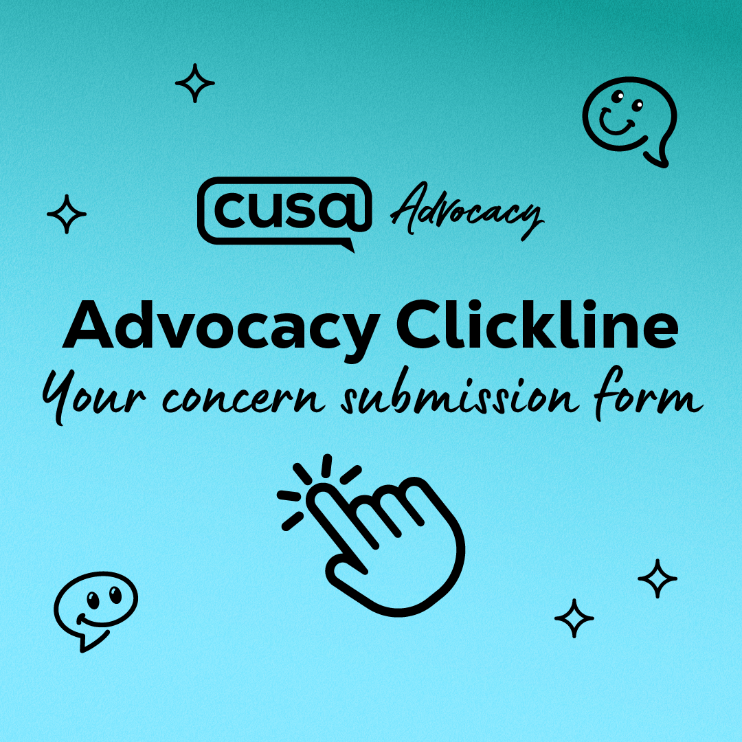 CUSA is proud to unveil its new “Advocacy Clickline” submission form. This is designed for anyone with an advocacy-related concern to have your voice heard by your student association.