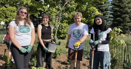 Climate Force volunteers worked with EnviroCentre to help plant hundreds of small-scale, densely planted native plants at Carleton as part of the “Tiny Forest” initiative.